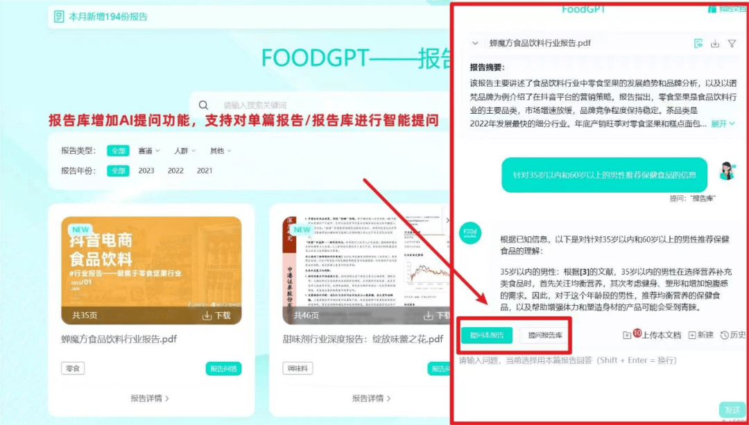 本次FoodGPT升级发布会将重点介绍两大新功能:报告库的问答功能和原料库功能。