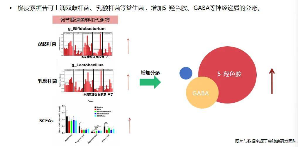攻克睡眠难题:金骏康研究显示,槐米中的核心成分可直接作用于大脑,提升与愉悦感和睡眠相关的5-羟色胺水平,从而直接延长睡眠。此外,它还通过优化肠道菌群,进一步促进包括5-羟色胺和GABA在内的多种“快乐”与“镇静”神经递质的产生,从根源上调节情绪、缓解焦虑,为高质量睡眠创造理想的生理基础。