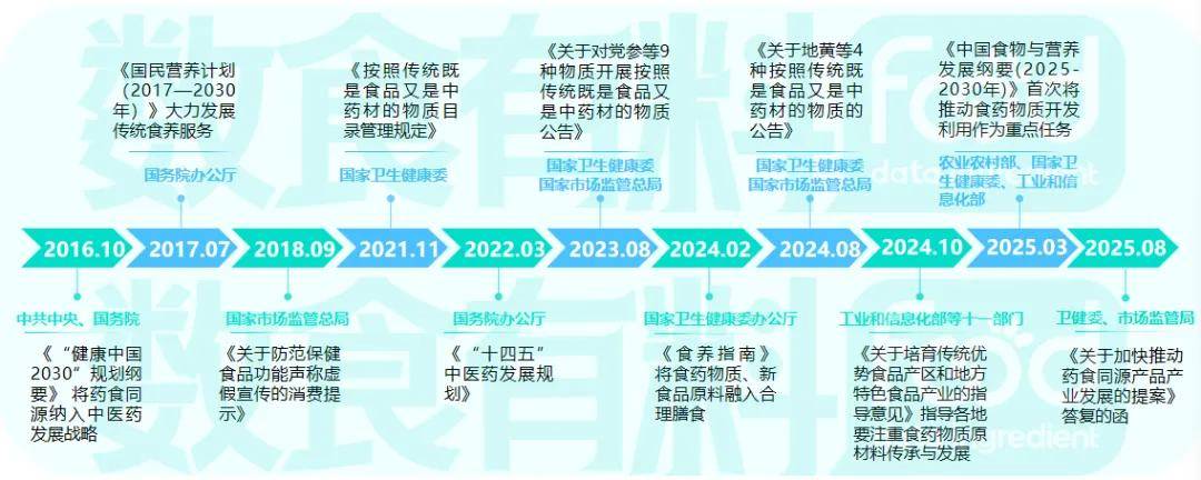 市场蓬勃发展离不开利好政策的支持与引导。2025年3月,国务院颁布的《关于提升中药质量促进中医药产业高质量发展的意见》 为药食同源产业的发展提供了指导和支持;今年8月,国家卫生健康委员会与市场监管总局等部门在对《关于加快推动药食同源产品产业发展的提案》的答复中明确表示,正积极推进食药物质目录的动态管理与扩充,并探索以数字标签等形式实现产品的“健康声称”,进一步推动行业规范化发展。