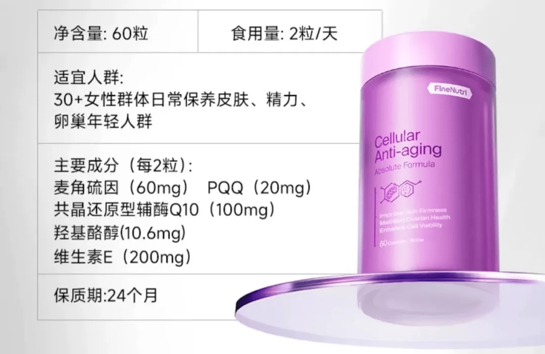 其推出的麦角硫因小紫瓶:作为一款专为30+女性打造的系统性抗衰产品,斐萃小紫瓶的亮点在于其科学配方。它精准针对线粒体能量衰减与卵巢功能衰退两大衰老核心问题,通过将麦角硫因与PQQ、辅酶Q10等关键成分进行协同增效的科学配比,旨在实现由内而外的全身抗衰。