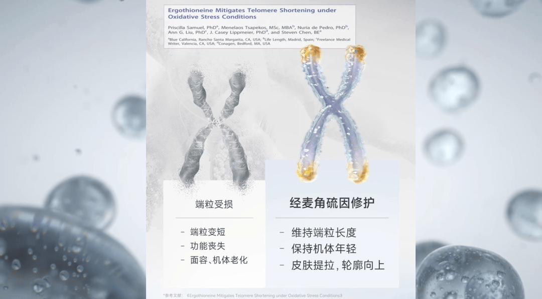 在细胞能量层面,麦角硫因作为一种具有强效作用的线粒体抗氧化剂,凭借其独特的转运机制,获得了消费者的广泛认可。 中国科学技术大学荣爽教授的研究表明,它在改善认知功能及代谢健康方面具有显著价值;华西医院文翔医生则证实了其在皮肤光老化领域的临床潜力。