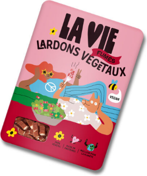 法国素食培根制造商La Vie推出的无硝酸盐植物培根,成分包括非转基因大豆蛋白、葵花籽油和木薯淀粉。