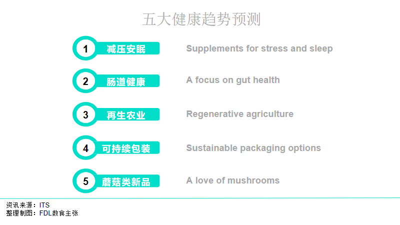 大保健风向下,5个值得关注的热门健康趋势:减压安眠、肠道健康、再生农业、可持续包装与蘑菇类新品。