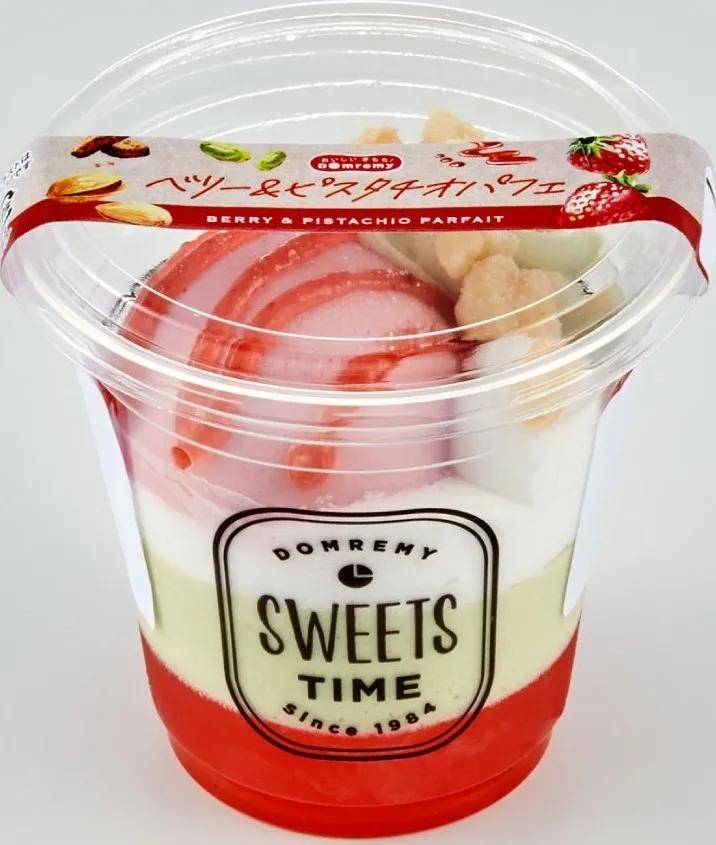 而Domremy则是将浆果与坚果拉到一起,制成了一款层次丰富的芭菲Berry & pistachio parfait。产品由浆果果冻、浆果慕斯、开心果慕斯配合上开心果奶油制成,整体酸甜可口、清新温和。此外,产品还拥有极高颜值,充满少女感。