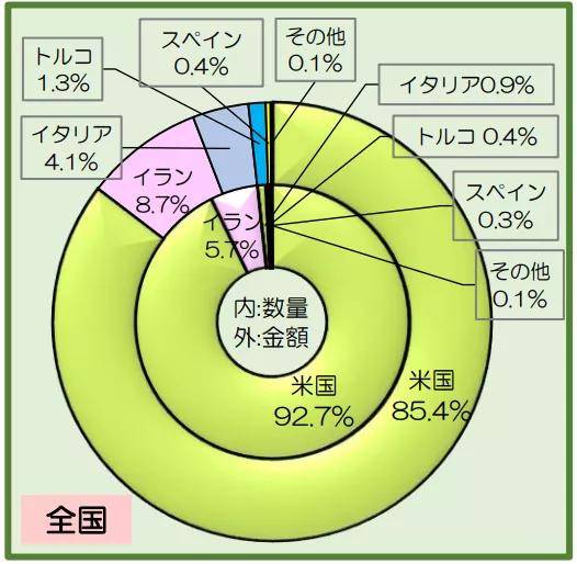 开心果作为坚果界的“扛把子”,被世界各地的消费者所熟知,并在全球范围内拥有悠久的食用历史。开心果的日本市场之旅,据说是起始于19世纪,并且一来就受到了市场的欢迎。到了1884 年(明治 17 年),日本曾经一度尝试自己种植开心果,但由于气候不适宜最终并未成功,如今日本市场上的开心果产品基本上都是依赖于进口,其中美国为最主要的进口国。