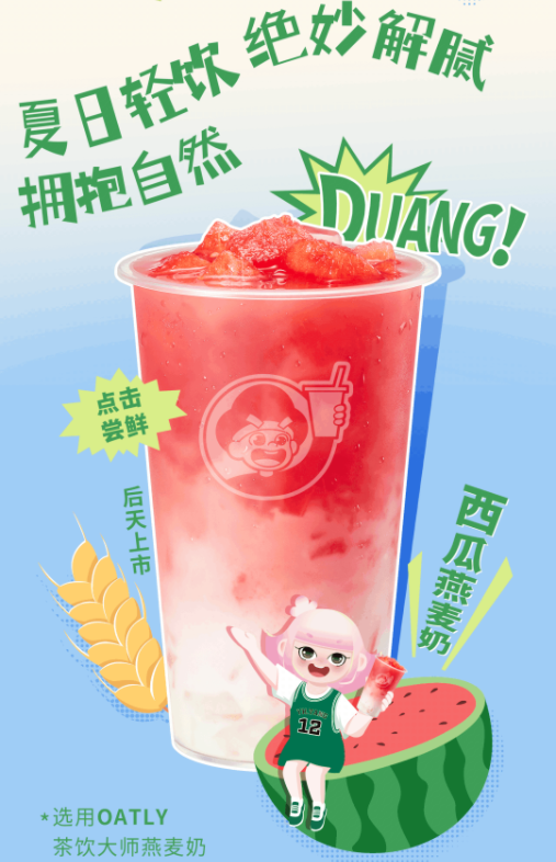 1、益禾堂联合OATLY推出西瓜燕麦奶,新品于7月7日上市。据官方介绍,西瓜燕麦奶选用西瓜,搭配OATLY茶饮大师燕麦奶,西瓜的清甜融合燕麦奶的奶香,口感香甜。其中,该新品通过特有的酶解技术,保留了燕麦中的膳食纤维,乳糖不耐受者均可食用。(资讯来源:益禾堂)
