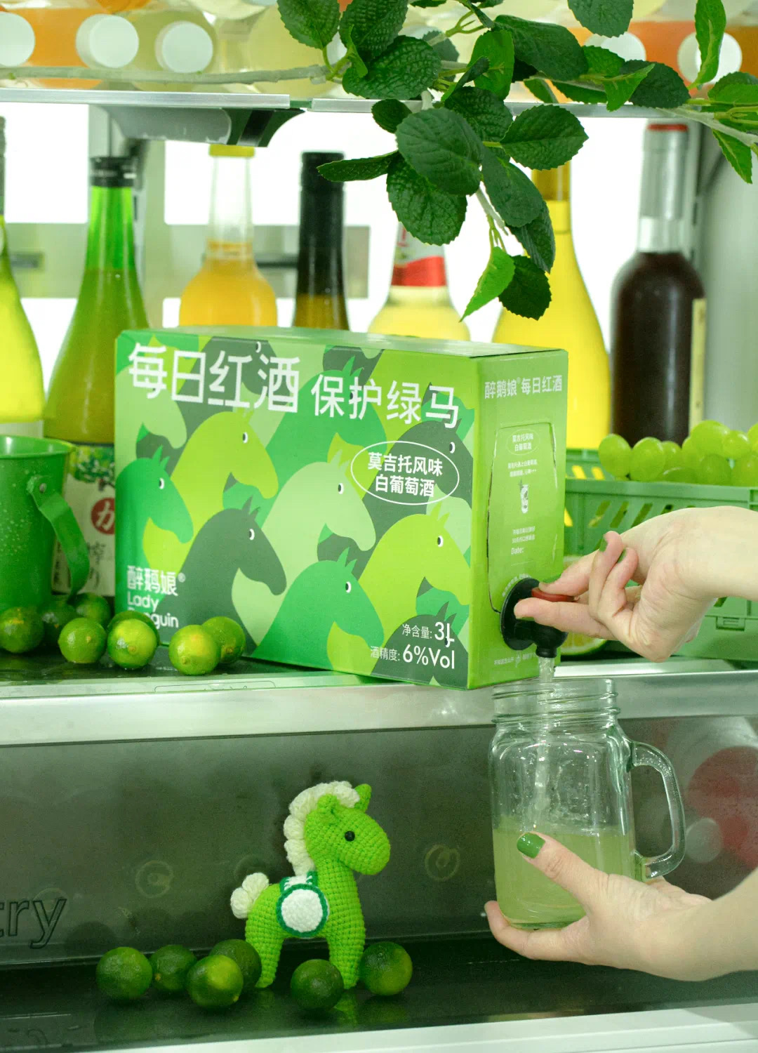 3、醉鹅娘推出每日红酒·莫吉托风味白葡萄酒薄荷加强版新品,目前已上市。据「醉鹅娘」介绍,新品选用新鲜NFC(非浓缩还原)鲜榨果汁,NFC鲜榨薄荷汁增加一倍,基底选用白葡萄酒,零添加糖、零香精、零色素、零防腐剂,口感自然。另外,醉鹅娘推出隐藏款包装“保护绿马”幸运酒盒,以及可以用来贴手机贴电脑贴杯子贴手帐的“绿马贴贴”。(资讯来源:醉鹅娘)