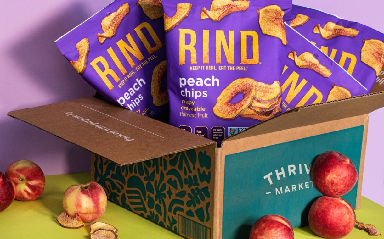 3、干果零食品牌Rind Snacks在健康电商平台Thrive Market独家发售限量版桃片Peach Chips。据悉,新品选取加州桃子为原材料,以品牌专有的低热脱水工艺加工制成,可最大程度保留水果天然、营养丰富的表皮。