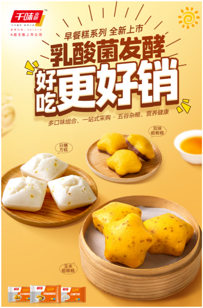 5、千味央厨推出千味早餐季系列新品:千味510g乳酸菌粗粮糕。据官方介绍,新品包含三种口味:白糖方糕、玉米粗粮糕和双味粗粮糕。新品以粗粮为主要原料,营养健康,同时选用美国杜邦-丹尼斯克乳酸菌发酵,口感软糯。