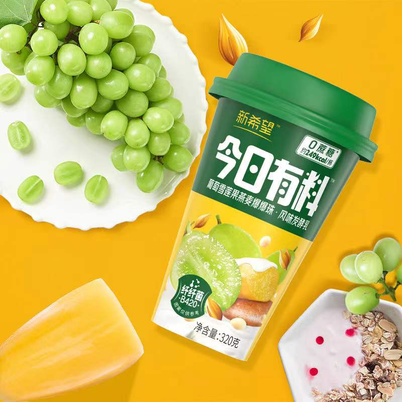 3、新希望旗下「双峰」推出新品:葡萄雪莲果燕麦爆爆珠风味发酵乳。据品牌官方介绍,该新品选用多汁葡萄和甜脆雪莲果,搭配燕麦爆珠和新鲜发酵酸奶,兼具酸奶的细腻和燕麦的醇香,Q弹有嚼劲,同时还添加了降体脂菌种纤纤菌B420,0糖低卡,每杯热量249kcal,口感浓郁绵长,清凉酸甜。(资讯来源:foodtalks)