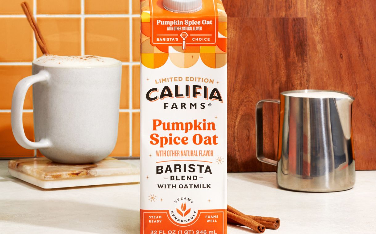 3、Califia Farms推出限量版无乳制品:Pumpkin Spice Oat(南瓜香料燕麦咖啡),以扩大其产品组合。据悉,新品由100%纯天然植物成分制成,包括肉桂、肉豆蔻和生姜等。官方表示,该产品最快将于今年秋天限量推出,预计在Target、Albertsons、Whole Foods和HEB商店有售,建议零售价为4.59美元/32盎司。(资讯来源:foodbev)