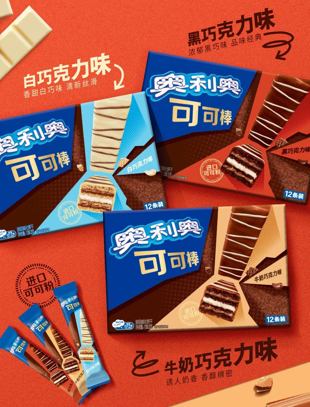 5、奥利奥推出全新可可棒,包含白巧克力、黑巧克力和牛奶巧克力三种口味。据悉,新品含大于9%的进口可可粉,醇正浓郁,搭配柔滑夹心,香浓不甜腻。此外新品含有4层松脆威化饼皮,3层柔滑夹心,层次丰富,入口轻盈。目前,新品已在亿滋天猫官方旗舰店发售,售价为46.9元/3盒。(资讯来源:奥利奥)