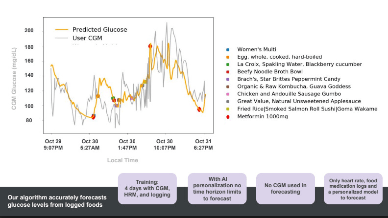 January AI由斯坦福大学遗传学主席兼基因组学和个性化医学中心主任Michael Snyder博士共同创立。January AI的“Seasons of Me”新陈代谢计划能够结合人体的食物记录、身体活动、心率变异性、CGM和其他数据源,以生成高度个性化的建议。