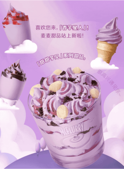 4、麦当劳上新「甜甜芋见」系列新品,包括甜甜芋见麻薯风味麦旋风、甜甜芋见风味圆筒、甜甜芋见风味新地(草莓)、甜甜芋见风味新地(朱古力)。甜甜芋见麻薯风味麦旋风添加真实荔浦芋头、麻薯和奥利奥碎,售价15.5元/杯,甜甜芋见风味圆筒售价6元/个,甜甜芋见风味新地系列12.5元/杯。即日起至9月5日甜品站全线冰淇淋产品买一送一。(资讯来源:麦当劳)