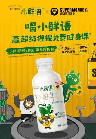5、每日鲜语宣布与运动健身品牌超级猩猩推出联名款轻鲜牛奶。据官方称,该款牛奶每100mL含4.0g鲜活乳蛋白,减少60%脂肪和30%卡路里。新品现已正式上市,消费者下单开盖有机会获得超级猩猩线下健身课程。8月26日前往大宁国际全能店、世纪大道全能店、长宁来福士全能店&单车店&私教店,可限时免费领取联名装鲜牛奶。(资讯来源:每日鲜语)