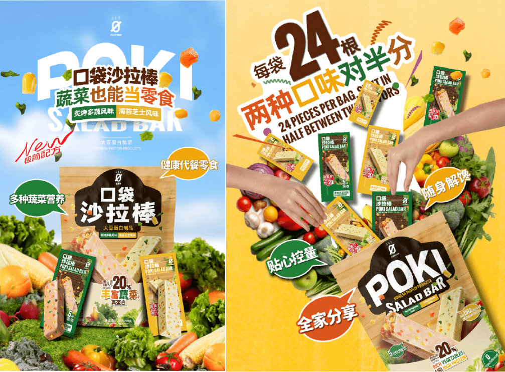 2、近日,国内植物蛋白食品先锋品牌星期零推出新品口袋沙拉棒,含有炙烤多蔬风味和海苔芝士风味两种口味。此次两种口味的沙拉棒都特别添加了蔬菜含量,其中炙烤多蔬风味特别添加了玉米、胡萝卜、杏鲍菇、马蹄、香葱五种蔬菜;海苔芝士风味特别添加DHA藻油,还有杏鲍菇、玉米两种蔬菜。